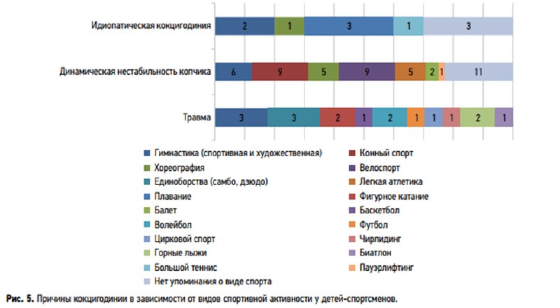Из всех пациентов с травматической болью в копчике юные спортсмены составили всего 5%. Основная масса — это дети, не занимающиеся спортом.