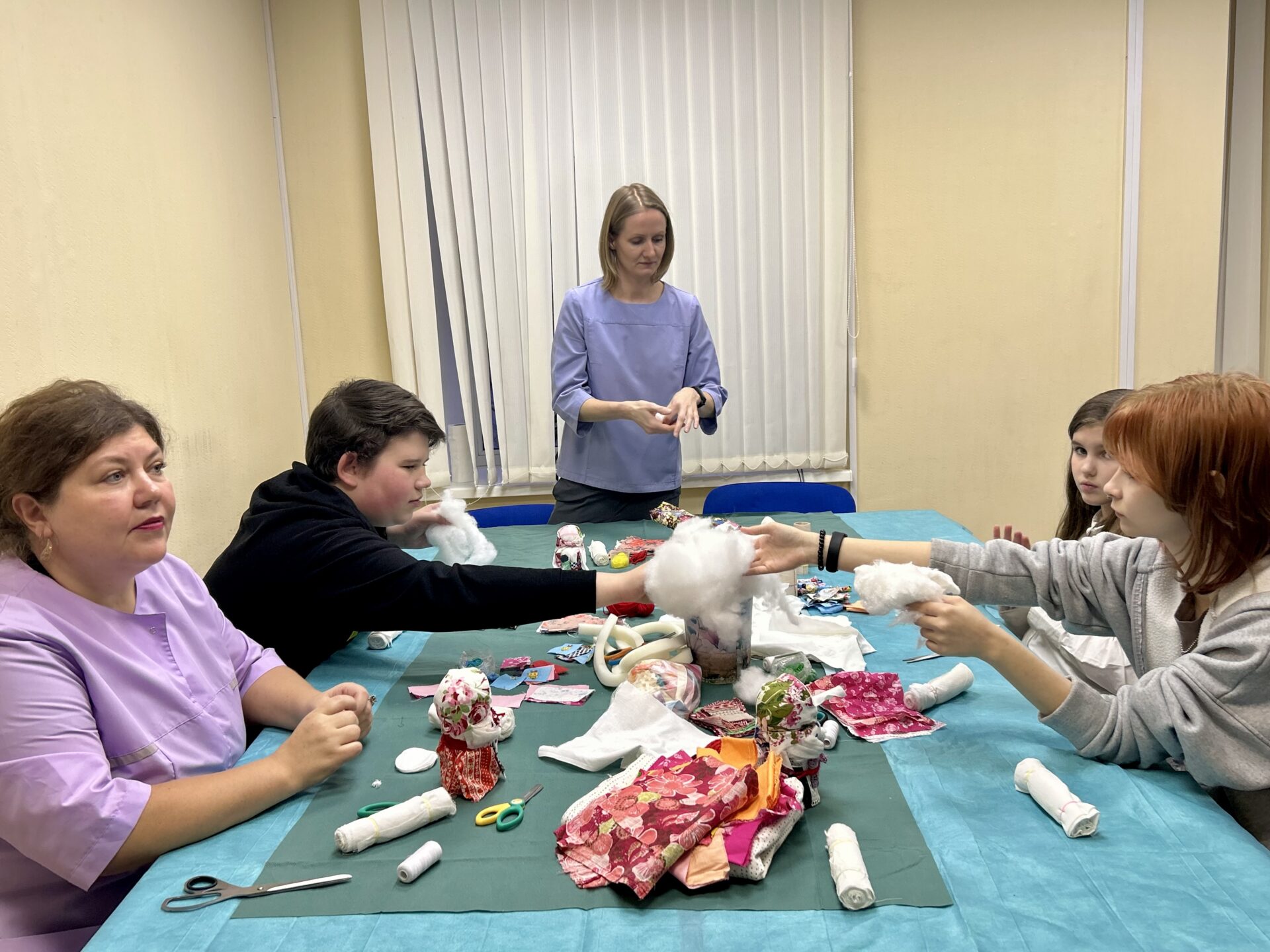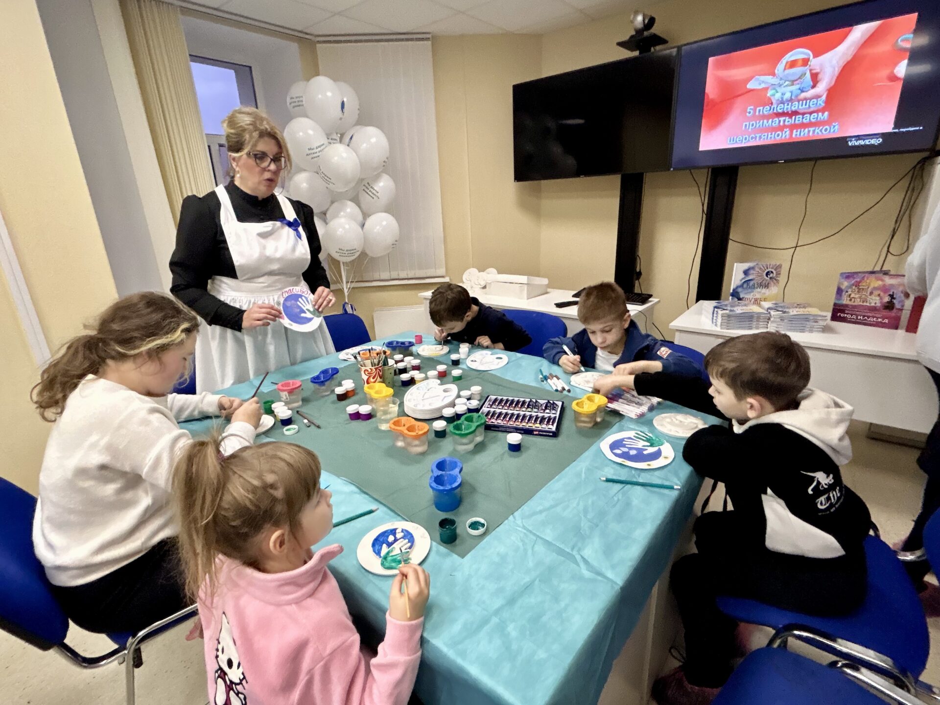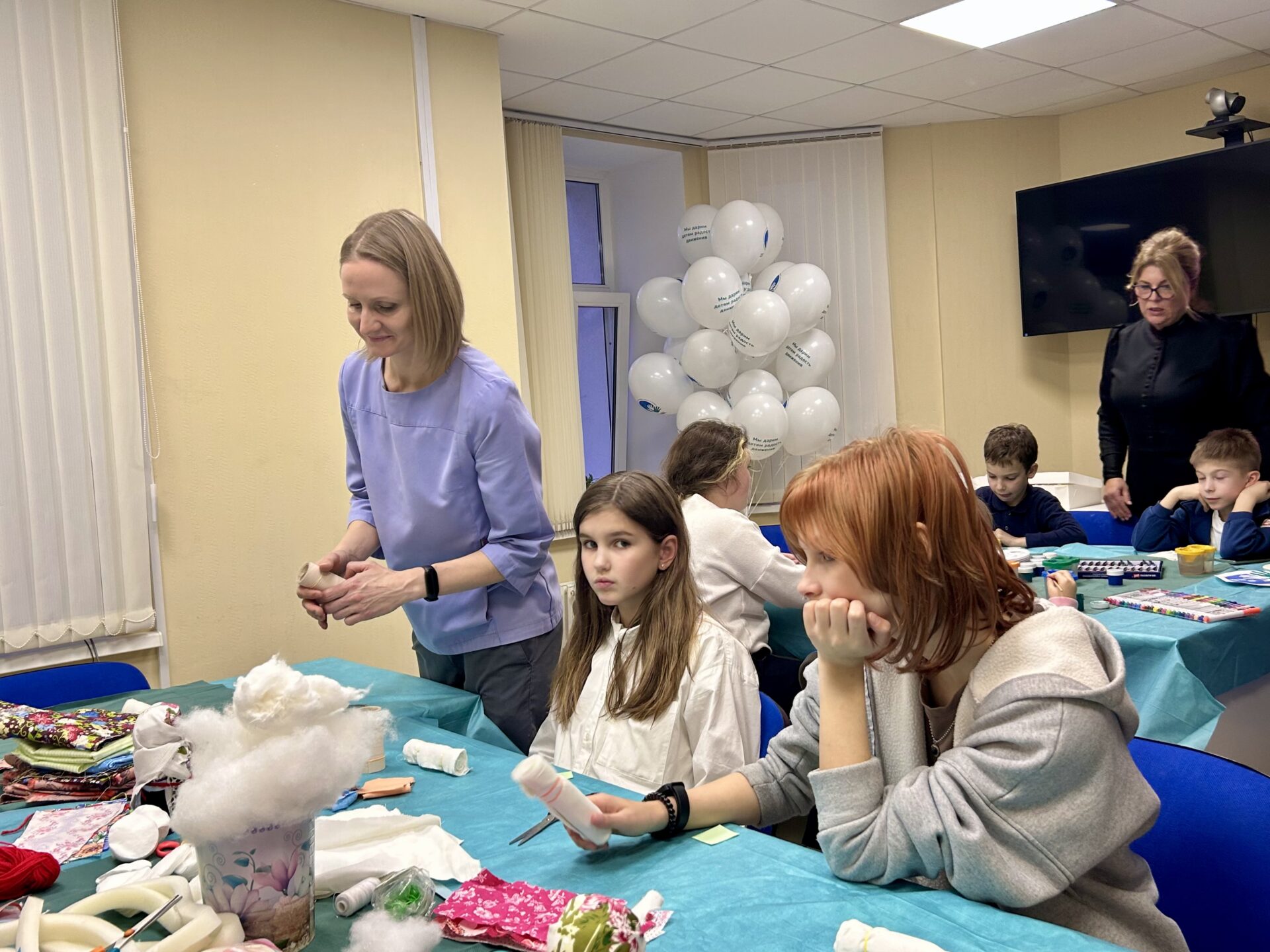 Пока родители общались с педагогами, дети погрузились в атмосферу праздника. В рамках национального проекта «Дружба народов СНГ -сказко- и куклотерапия» прошёл творческий мастер-класс. Маленькие пациенты своими руками мастерили куколку «Многодетная мама Россия», раскрашивали гипсовые фигуры и получали угощения. Каждый ребёнок ушёл с подарком и яркими эмоциями.