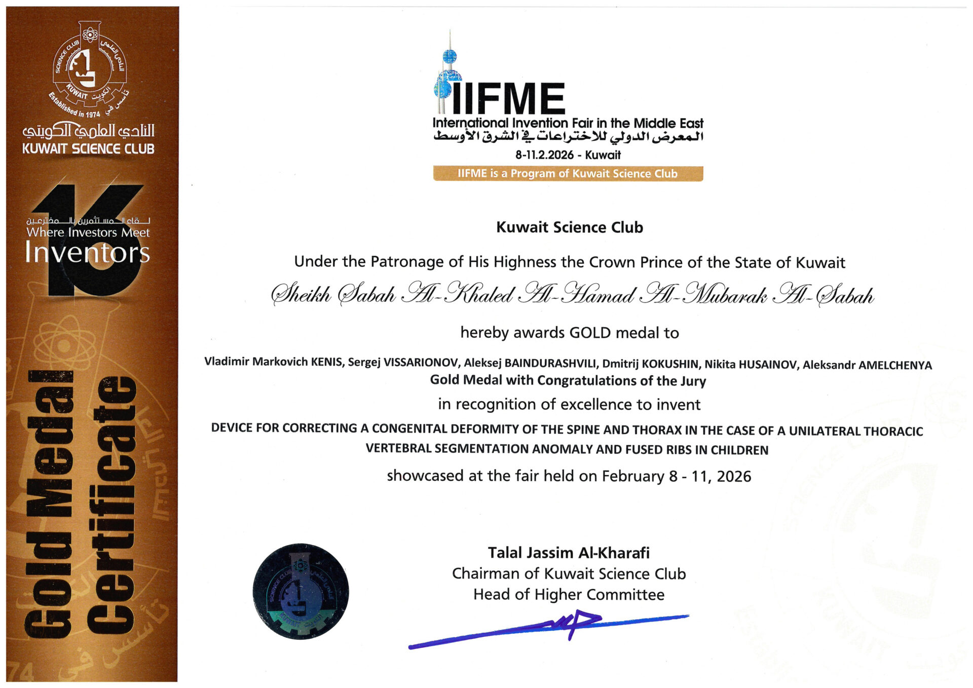 Ученые Национального медицинского исследовательского центра детской травматологии и ортопедии им. Г. И. Турнера Минздрава России с триумфом представили Российскую Федерацию на 16-й Международной выставке изобретений на Ближнем Востоке (16th International Invention Fair in the Middle East — IIFME 2026), которая проходила с 8 по 11 февраля 2026 года в Кувейте.