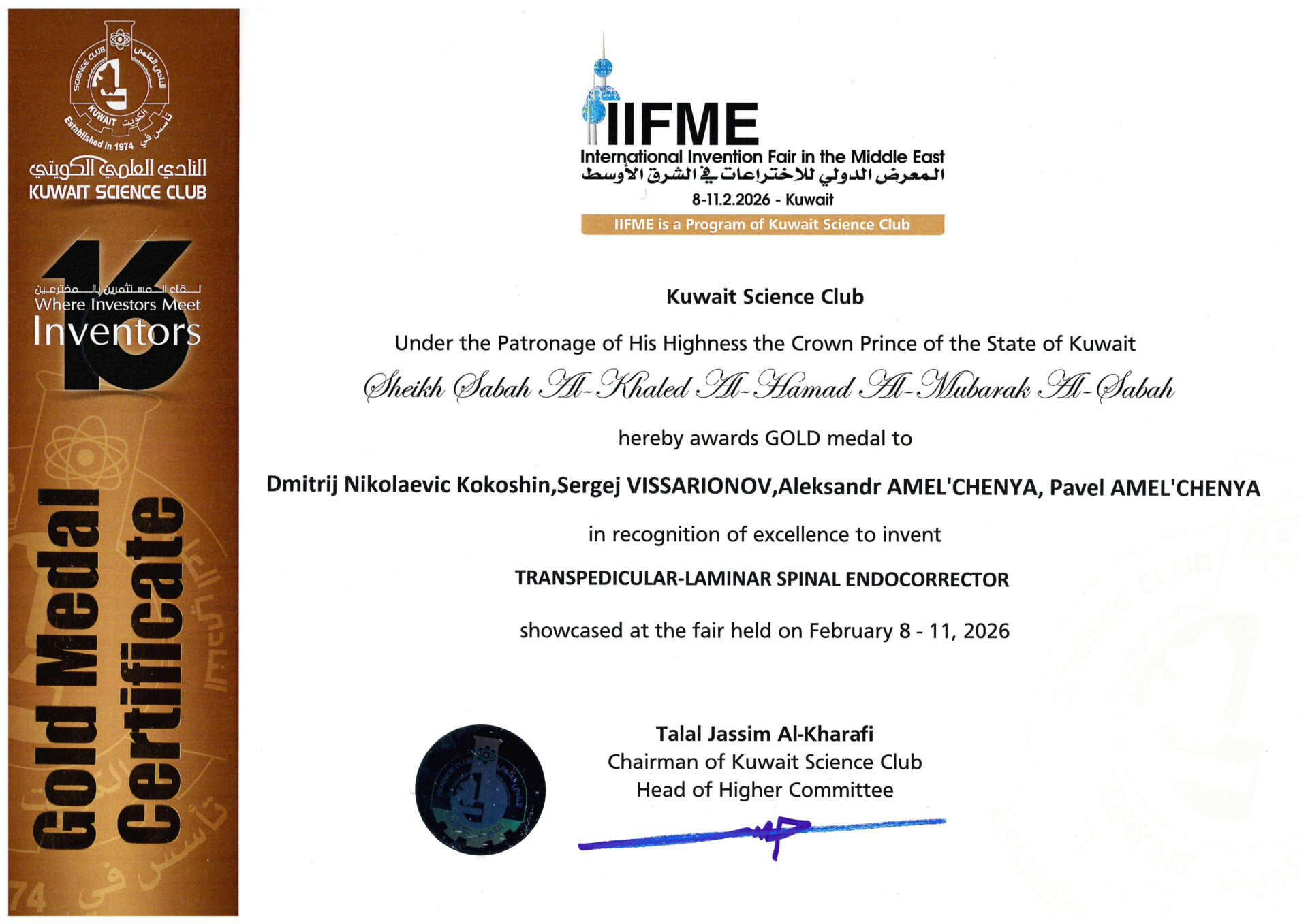 Ученые Национального медицинского исследовательского центра детской травматологии и ортопедии им. Г. И. Турнера Минздрава России с триумфом представили Российскую Федерацию на 16-й Международной выставке изобретений на Ближнем Востоке (16th International Invention Fair in the Middle East — IIFME 2026), которая проходила с 8 по 11 февраля 2026 года в Кувейте.