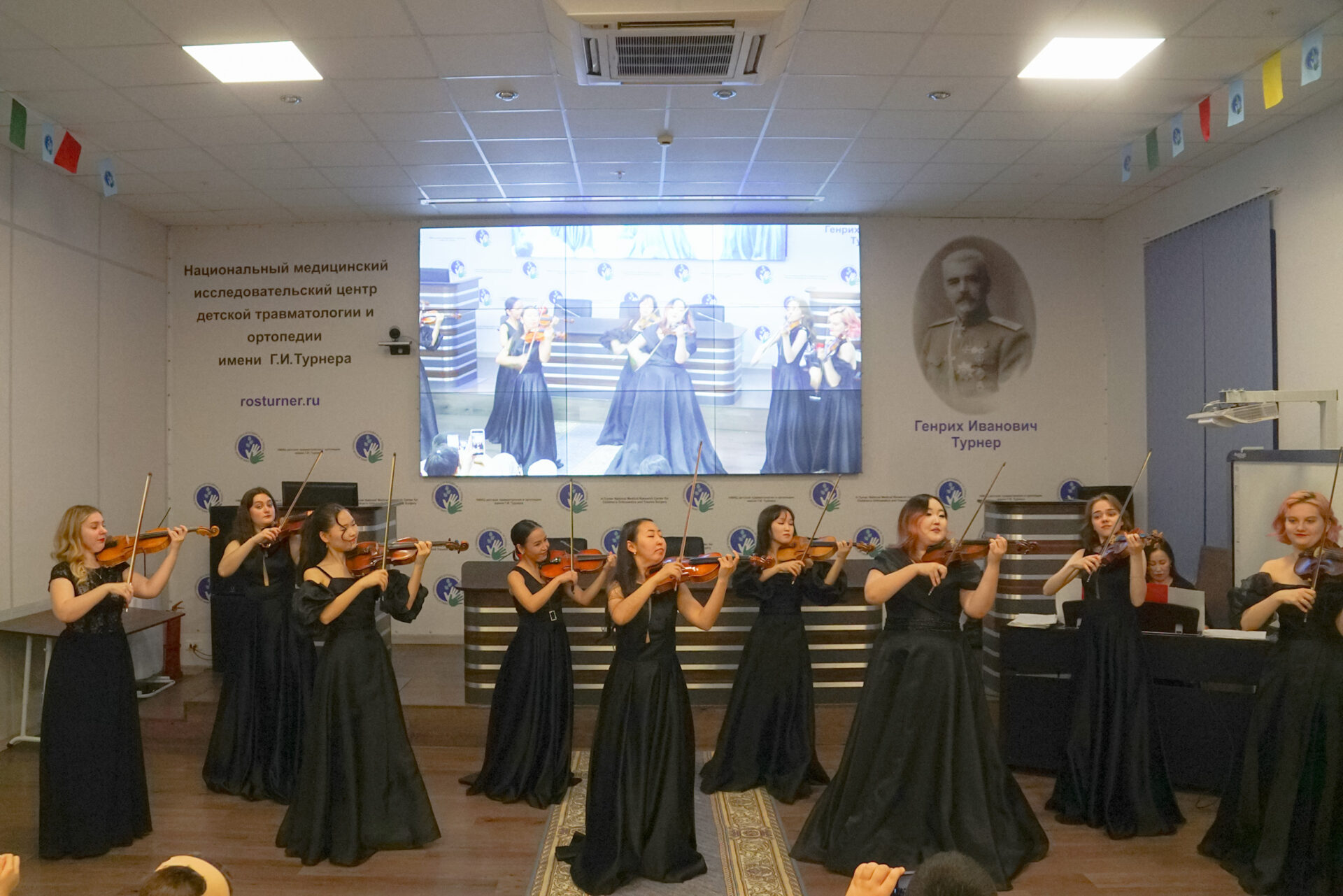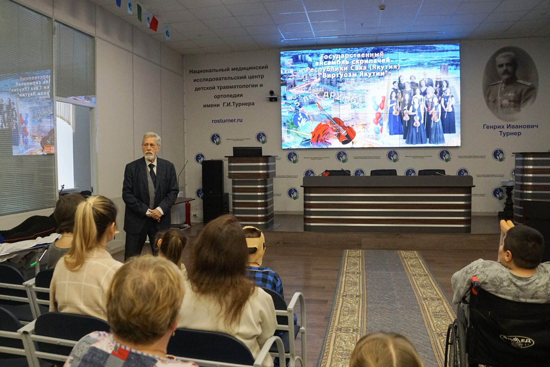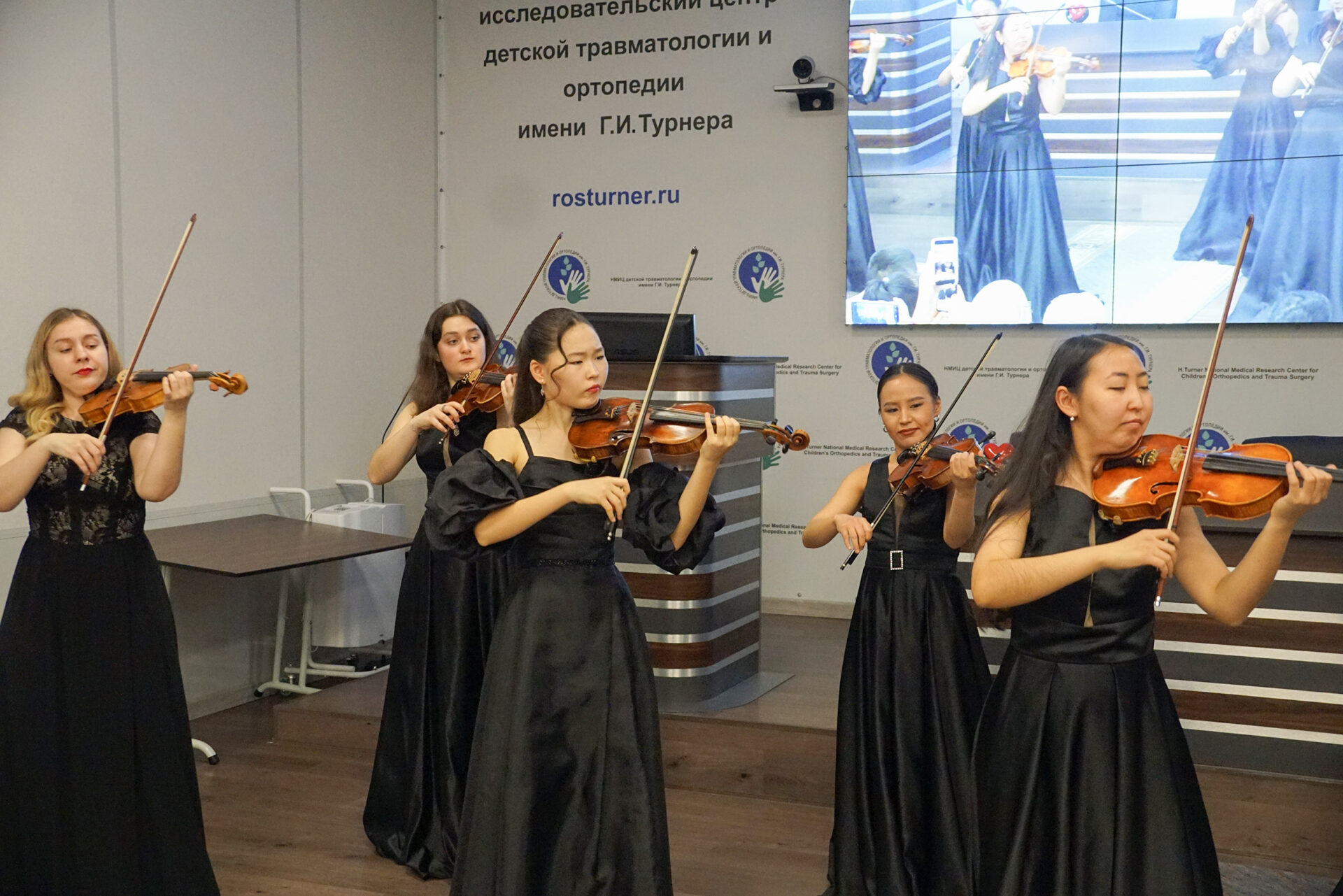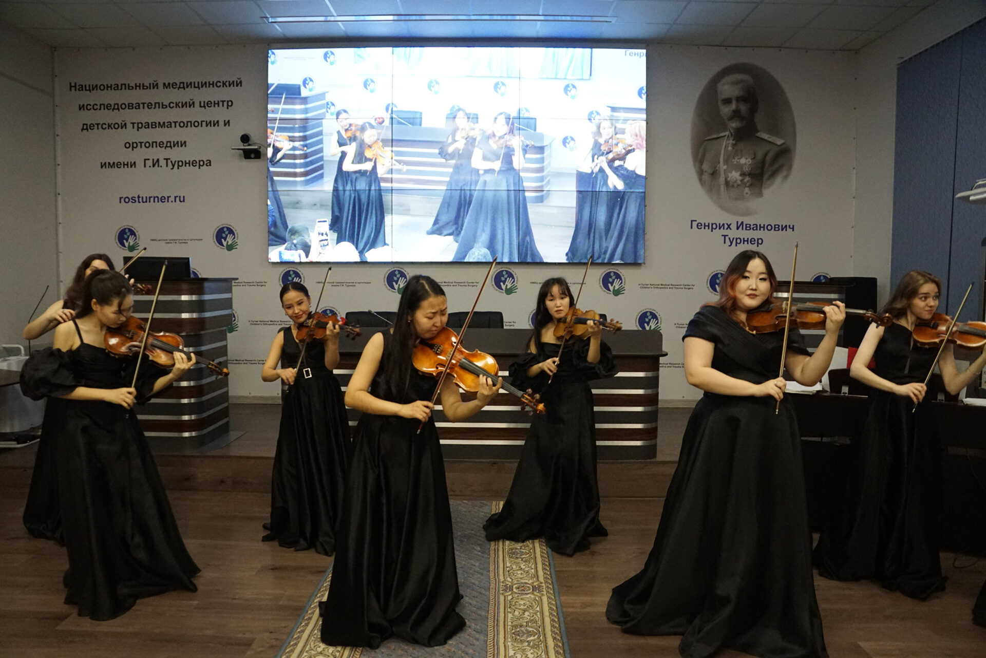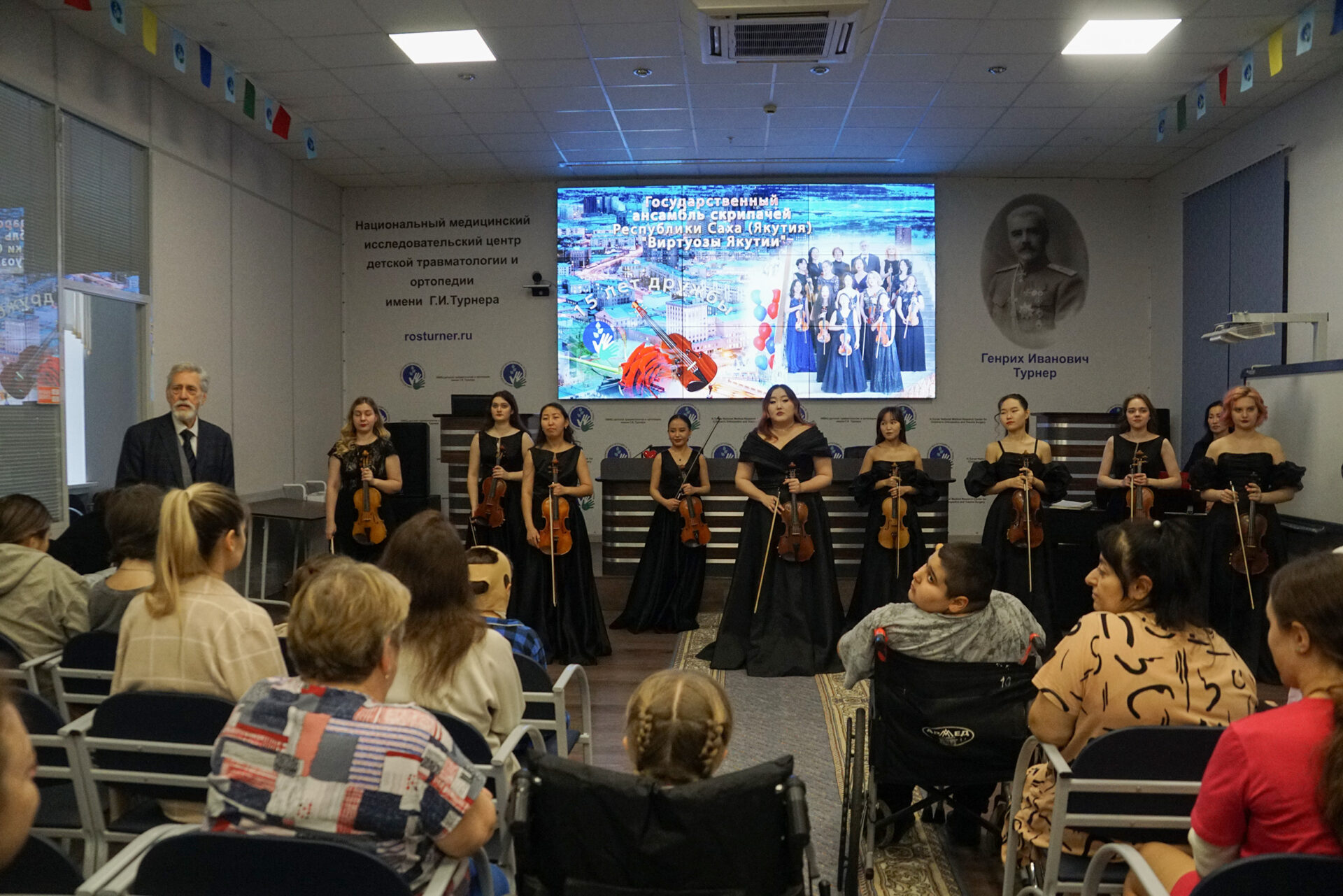 11 ноября 2025 года Национальный медицинский исследовательский центр детской травматологии и ортопедии имени Г. И. Турнера Минздрава России по ежегодной традиции вновь принимал Государственный ансамбль скрипачей «Виртуозы Якутии». Юбилейный, 15‑й по счёту, концерт в стенах Центра стал ярким событием для маленьких пациентов, их родителей и сотрудников учреждения.